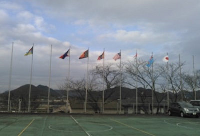 右奥に目をやると、毎朝の点呼や体操会場になっている国旗掲揚場、