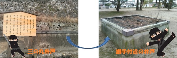 石垣と同じ石で築かれた井戸。城外への抜け穴説があるそうで、わくわくして覗き込んでみました。
