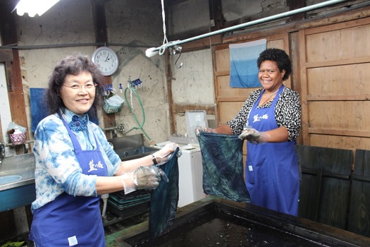 女性部のご好意で、私も参加させていただきました。研修生たちは、昔の藍染の工程を写真で撮影したり、
