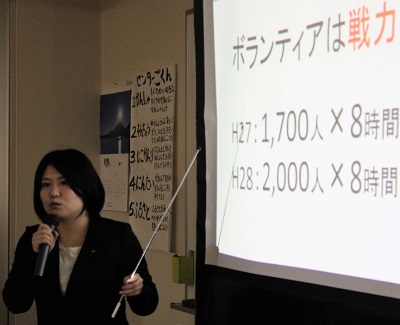 内容は、簡潔でスピーディー、映し出された映像には、大きく「ボランティアは戦力」。